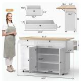 【Multipurpose Power Outlet】The kitchen island is equipped with a 1500W power outlet, including 2 USB ports and 2 three-pin sockets. It serves as a countertop for the host to prepare delicious dishes and its widened drop-leaf design makes it perfect for entertaining guests. The kitchen island showcases freshly baked pastries and dinner, and guests are amazed at its convenience. Not only does it facilitate the operation of various appliances, but it also allows for easy charging of mobile phones.