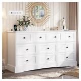 Hasuit White Dresser for Bedroom with 10 Drawers, 55.2" Long Drawer dresser with Charging Station, Farmhouse Dresser Chest of Drawers, Large Wooden Storage Tower Organizer, Dressers for Bedroom Closet