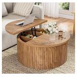 The lift-top coffee table features 4 lifting methods, a partitioned hidden storage compartment, an open shelf, 2 fabric drawers, a storage cabinet, and an LED light. Ideal for eating, working, studying, or gaming, it quietly lifts to maximize small spaces. High-quality metal gas support ensures easy, noise-free lifting, supporting up to 166 lbs. Made from durable P2 engineering wood. (Caution: Lower table top must be raised first to avoid damage.