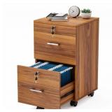 VINGLI 2-Drawer Wood File Cabinet with Lock Mobile Walnut/Black/Grey/Brown/White