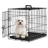 Dog Crate for Small Dogs 18 Inch Folding Metal Wire Pet Cage Single Door W/Divider Panel Indoor Outdoor Kennel Leak-Proof Plastic Tray,Black