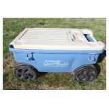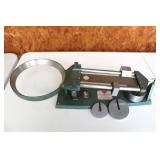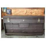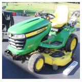Interest: John Deere: x540 Multi - Terrain Riding Mower w/ 54" Deck & 487 Hours, 3.5' x 2.5' Pull Behind Cart, 4' Lawn Roller & 4' Front Snow Blade; 8 Drawer Metal Machinist Tool Box, Black Stone "Adventure Ready" Grill w/ Propane Tank, AMF Bowling Tools: Drill Press w/ Built in Vacuum & 2 Sets of Drill Bits, Ball Hole Jig w/ Guides, Ball Polishing Machine, Ball Router, Model 300 Bowling Ball Scale w/ Weights, " Scott" Ball Pantographer w/ Jig & More Bowling Ball Drilling Accessories; Primitive Work Bench w/ Drawer & Back Drop.
