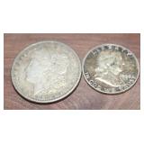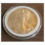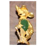 Gold, Coins, Sterling Silver & Jewelry: 14K: Diamond Ring Engagement Set & Emerald & Diamond Art Deco Pin; (5) 14K Gold Ladies Watches: Lady Elgin, Croton w/Slim Band, (2) Bulova & Hamilton with a Slim Band; 14K 20" Chain w/10K Heart w/Rubies & Diamonds; Vintage 14K Brooch w/Anthropomorphic Mouse w/"Jelly Belly" Jade Gemstone, Silver Coins & Bullion: 1921-S Morgan Silver Dollar, Commemorative Russian 2013 - 3 Ruble Coin Marked Ag 925, 1992 American Silver Eagle & 1960 Ben Franklin Half; Costume Jewelry & Etc.