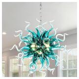 (472) Hand Blown Glass for Living Room Chandeliers Modern Luxury Ceiling Hanging Pendant Light Fixture Adjustable Height for Dinning Room/Lobby/Stairway/Bedroom/Study Room/Kids Room