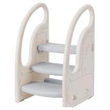 Toddler 3 Step Stool Onasti Kids Standing Tower for Toddlers Plastic Learning Helper Stool for Kitchen Counter Bathroom Sink Toilet Potty Training with Handles and Non-Slip Pads-Grey White