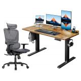 55x24 Inches Electric Standing Desk with 2 Drawers, Height Adjustable Stand up Desk for Home Office, Ergonomic Sit to Stand Table with Storage Shelf, DIY Board, Hooks, Oak