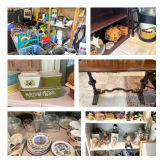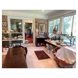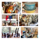 Vast and Voluminous in Vienna Large, jam-packed, clean house in Vienna full of great stuff! World travelers, shoppers and collectors filled a large 5 bedroom house with everything-china, furniture, Christmas, holiday, gardening, dolls, collectables and so much more! Most items in very good condition. Highlights include: Furniture-many lovely Asian cabinets, 2 dining room tables with chairs, 2 buffets, tea cart, sofa table, many end tables, hall table, king size 4 poster bed, tall boy dresser, long dresser, night stands, antique dressers, vintage girl’s room style dresser, midcentury full size bed, twin bed, pretty antique full size bed, china hutch, camel back sofa, multiple display cabinets, butler’s table, Grandfather clock, large glass outdoor table with 6 chairs, wrought iron outdoor table with 4 chairs, 3 cement outdoor benches, multiple storage trunks, 1 vintage steamer trunk with rounded top, 2 blue upholstered chairs, 2 cream wing back chairs, county style shelves and bench, jewelry cabinet, TV armoire, bedroom bench, 2 quilt racks, secretary desk, large corner cabinet, navy colored leather sofa and loveseat, treadle sewing machine, multiple sets of chairs, multiple book shelves, 2 bakers racks Art-very nice art from around the world, lots of art from numerous Asian countries, Africa, Hawaii, Germany and more, art all over every wall and more collected in boxes, original paintings, prints, mixed media, Asian art, 3 Asian screens, tiny paintings Décor-nice rugs, sterling flatware and pieces, Franz china pieces, many hurricane lamps, nice decorative table lamps, silver plate, fine glass and crystal including Waterford and Rogaska, multiple clocks, quilts, Grandfather clock, large number of Lenox pieces (vases, bowls, figurines, ornaments, etc.), figurines including Royal Doulton, Royal Albert, Nao, etc., extremely large number of decorative plates from all over, souvenir plates, hand painted plates, Asian plates, blue and white china pieces, midcentury flowery sconces, collection of tea pots, tea sets, and tea cups, fancy Venetian style chandelier, few Venetian style glass pieces, pillows and cushions, pottery, Mexican pottery, baskets, Wedgwood jasperware, art glass, depression glass, few pieces of uranium glass, lots of Hummel figurines, collection of ducks, mirrors, brass and copper Kitchen and entertaining-All-Clad cookware, 4 large sets and multiple small sets of dishes and china including floral Noritake (can’t find exact name), Wedgwood “Wildbriar”, Noritake “Gold Court”, Independence Ironstone “Shenandoah”, cool 1970’s olive green Homer Lauglin “Green Madrid” dishes, knives, small appliances, lots of bakeware, vintage Pyrex, mini fridge, canisters Electronics-cameras, many clock radios, small electronics, some vintage electronics, binoculars, 5 space heaters (some are new), new dehumidifier, 3 TV’s, a few vintage phones, 1980’s typewriter, cool antique Underwriter typewriter Christmas and Holiday-LOTS AND LOTS of Christmas and other holiday items-100’s of ornaments, Santas, Teddys, many Annalee dolls, many Byers Choice Carolers, vintage Christmas, German Christmas spinning pyramid, wraps and ribbons, Easter décor, vintage Easter décor, Halloween, valentines, July 4th Tools-hand tools, some power tools, garden tools, loose hardware, small snowblower Gardening-large number of nice flowerpots, garden statuary and décor, 3 outdoor cement benches, 3 bird baths, 2 outdoor tables, many yard chemicals Toys-vintage games, WWF puzzles, vintage Fisher Price, vintage cars and trucks, a few vintage Transformers, 1 vintage Star Wars item, 2 vintage sleds, Furbies, a whole big bedroom FULL of dolls (modify them for great Halloween decorations!), stuffed animals, loads of teacher prizes/goodie bag type smalls, children’s tea sets, Household/other-vintage scrapbook of war comics, office supplies, lots of household linens, lots of tablecloths, lots of cleaning supplies, toiletries, medical equipment (walkers, rollator), SO MUCH luggage, (approximately 40 pieces!), books, Little Golden books, treadle sewing machine, small amount sewing supplies, “Teacher” apples and collectables, hat boxes, candles, treadmill, storage bins Clothing-small amount of clothing, some accessories, some purses