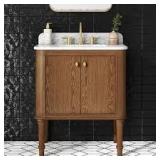 (24). Home Decorators Collection Collette 30 in. Single Sink Cinnamon Oak Bath Vanity with White Carrara Marble Top (Assembled)