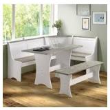 (11). Linon Home Decor Becker 3-Piece L-Shaped White and Gray Wood Top Nook Dining Set Seats 5