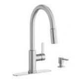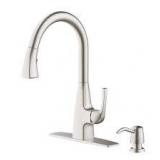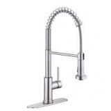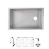 (145). Glacier Bay Tight Radius 36 in. Undermount Single Bowl 18 Gauge Stainless Steel Kitchen Sink with Spring Neck Faucet