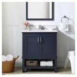 (15). Home Decorators Collection Tupelo 30 in. Single Sink Midnight Blue Bath Vanity with White Engineered Stone Top (Assembled)