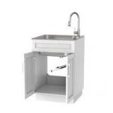 Glacier Bay 24 in. W x 21 in. D x 51 in. H Drop-In Stainless Steel Laundry Sink with Faucet and Cabinet in White