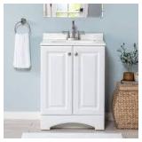 Glacier Bay 25 in. Single Sink White Bath Vanity with White Cultured Marble Top (Assembled)