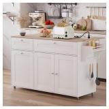 - Kitchen Island Table with Large Storage Space: This rolling kitchen island with 53.7-inch countertop offers ample workspace for food preparation, while two large cabinets and two drawers provide organized storage for utensils, cookware, spices, towels, and appliances. Side towel racks and spice shelves ensure essentials are always within reach, enhancing efficiency and convenience.