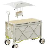 ONEFOREST Collapsible Wagon Cart with Canopy Tent, Portable Large Capacity Foldable Wagon Cart, Heavy Duty Garden Cart with Wheels for Camping Sports Beach Backyard and Picnics, Beige