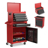 Tool Chest 5-Drawer Rolling Tool Storage Cabinet with Detachable Top Tool Box Liner Universal Lockable Wheels Adjustable Shelf Locking Mechanism Metal Tool Cart for Garage Workshop