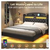 ăFull Floating Bed Frame with RGB light stripsă-This full size bed fnrame has RGB light strips attached to the headboard and under the bed, and the LED lights can be controlled by a mobile app or a remote control. You can freely set the brightness and color (more than 60,000 colors to choose from), and there are control modes such as style mode, music mode, microphone mode, and timing function waiting for you to explore.