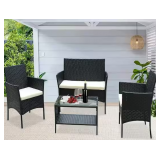 [Convenient Versatility] With a natural and minimalist style, this wicker bar set can be used not only for group dining, but also for entertaining guests. The table and chairs have non-slip pads on the feet, the cushions and chairs are connected by ropes for your safety. When the outdoors is over, 4 chairs can be pushed under the table, making storage and maintenance easier while saving you space.