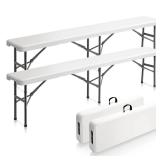 6 FT Folding Portable Plastic Long Table with Carrying Handle