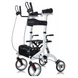 ELENKER Upright Rollator Walker, Stand Up Rollator Walker with Shock Absorber, 10” Front Wheels and Carrying Pouch, Suitable for Outdoor, White