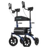 ELENKER All-Terrain Upright Rollator Walker, Stand up Rolling Walker with Seat, 12” Non-Pneumatic Wheels, Compact Folding Design for Seniors (Blue)