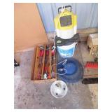 TOOLS, SPORTING, HOUSEHOLD & MORE: Honeywell 5500 portable generator• Master MH-75T-KFA kerosene heater• hand tools inc wrenches, sockets, hammers, screwdrivers & more• Hi-Lift jack• metal shelving• ladders• oils• bench vises• tool boxes• pipe wrenches• Black & Decker miter saw• rods, reels & tackle• garbage cans• chains• cement mixer• Criterion refrigerator• Coleman lanterns• battery chargers• wet/dry vacs• stoneware• Pyrex• Fire King• Jadeite• dining sets• sofas• queen bedroom sets• vintage dinnerware• silver plate flatware• Green Bay Packers jackets, hats & collectibles• electrified parlor lamp• vintage dressers• holiday decor• office desks• stairlifts• Tasco telescope• gun cabinet• safe• Bissell lift off deep cleaner• rugs• Gibson commercial upright freezer & much more!!