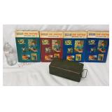 Come find your next treasure with us! 1 Vintage Pam Clock Co Beverly Farms Ice Cream Vintage electric wall clock advertising Beverly Farms Ice Cream. Copyright '63, Made in USA. Powers on & clock hands move. Measures 15.25"x15.25"x3" deep. 2 HLC Fiesta Rangetop Salt & Pepper Shaker Set Missing the stoppers. 3 Huge 25" Paper Mache Crow / Raven Statue Cartoon Figure, perhaps from Dumbo? Lightweight, hollow paper mache. Great for a Autumn / Fall display. NO shipping available. 4 Hot Wheels Redline 1968 Lola GT70 Grand Prix Car Please see photos for condition. 5 1994 Walt Disney Store Snow White Lithograph Measures 16"x12" overall & includes the original envelope. 6 NBA Cards 90's,2000's & Newer- 72 Cards Basketball Cards are in binder sheets and binder, players include Michael Jordan, Magic Johnson, Shaquille O'Neal, Dennis Rodman and more. 7 2012 Peanuts Christmas Play Mini Figure Set Forever Fun Play Set. Back corner of the box is dented. 9 Green Depression Glass 3" Juice Shot Glass - Glows Bottom outer edge has several very small chips. 10 Vintage Nemadji Clay Indian Art Pottery Bowl - USA Measures 3" tall by 4" across the top rim. 11 Mosser Jadeite Green Glass Bunny Rabbit on Nest Has several fine manufacturing flaws / cracks. Does not glow under black light. 12 Vintage 1974 Monster Mash Sounds of Terror Record Some scratching, please see photos. Album sleeve has the name Jeff handwritten on the upper left. The Scary Fun Record! From Pickwick SPC-5104 In Screaming Stereo! 14 Vtg AJ Renzi Jack O Lantern / Witch Candy Bucket Measures 6.5" tall, not including the handle. 15 1960s Neon Floral Handmade Dress w Belt - Glows! Black Light Reflective as shown in second photo. NO tags or size indicated. 17 Vintage German Wind-Up Camel & Monkey Toy - No Key Camel is missing a pom pom on his harness, no key, untested. 18 2000's Pok�mon Cards - 72 - Used Condition Cards are in binder sheets and binder, Various Pok�mon cards, plus energy cards. 19 Pam Clock Co Claybrook Travelers Insurance Clock Clock hands move, if time is going backwards flip the plug in outlet. Does not light up as it is missing a bulb. One small scuff mark on the glass & minor damage to the cord (shown in last two photos). Vintage Electric Wall Clock with Bubble Glass fa... 21 Vintage Lava Lite Lamp - Works!!! Metal cap has some scuffing, base has a couple small dents. 23 2010 Peanuts by Schulz Snowboard Snoopy Set United Feature Syndicate / Forever Fun Play Set. 24 Babe Ruth - The Sultan of Swat 20x24 Framed Print NO shipping available. 25 Marcus the Carcass - 5 Pc Glowing Yard Decoration Light pulses. Powers on & includes the original box. 26 Sterling Silver Creations Heart Bracelet - NWT New with tag. Made in Italy. 7.25" length. 27 Vtg Hershey's Ice Cream Lighted Sign w Extra Bulbs Powers on. Sign measures approx 29" wide by 15" tall by 3.5" deep. Six extra light bulbs included. NO shipping available. 29 Madame Alexander Where The Wild Things Are Set #48505. Box does have minor damage & discoloration on the top. 30 Amber Glass Formaldehyde Sol. Apothecary 11.5" Jar Ground Glass stopper, 2500 ml. 32 Vintage Perfume Nips Ampules & Metal Rose Box contains 14 individual sample nips / vials. 33 Signed Don Knotts Barney Fife Toon Art Collectible Andy Griffith Show Mayberry Deputy Autographed Collectible. Outer frame measures 14.25"x11.25". 35 Vintage White Star Line Titanic Metal Sign The World's Largest Liner sign. Measures approx 11"x16". Sign shows some use & wear. 36 Peanuts Charlie Brown Christmas Tree - 24" tall Open box, items inside are new. Red Ornament is in with the blue cloth. 37 Baseball Card Album w 12 Sheets of MLB Cards Spine of Album is cracked, torn at top. Spine has a Washington Redskins Card in the pocket. 39 Hot Wheels Redline 1969 Ferrari 312P Die Cast Car Please see photos for condition, back portion that lifts is broken on one side. . 41 Vintage Italian Veneto Flair Candle Holders - 3 Signed & Numbered Pottery. 42 MLB Baseball Cards 80's,90's & Newer - 99 Cards Cards are in binder sheets and binder, players include Bo Jackson, Eddie Murray, Nolan Ryan, Barry Bonds, Deion Sanders and more. 44 Mosser Glass Jadeite Butter Tub / Covered Dish Does not glow under black light. 45 Heisey Custard Glass Souvenir Goblet - Glows! Beaded Swag pattern, approx 4" tall. Glows under black light. Top rim has some wear to the gold. 46 Mark Martin Signed Race Tire Framed Collectible This framed collectible is a Limited Edition of 106 with Autographed Race Used Tire. Frame has some scuffing. Outer frame measures 15"x17". 47 French Provincial Rocco Style Fireplace Screen Lacquered Brass & Black Mesh 3-Panel Folding Fireplace Screen. Measures 28.75" tall. NO shipping available. 49 Music CDs - Rock POP Compilations & Classical Music CD's have been verified, they do match the case. 50 2000's Pok�mon Cards - 81 - Used Condition Cards are in binder sheets and binder, Various Pok�mon cards, plus energy cards. 51 Anchor Hocking Circle Optic Tea Cups - Glow! Set of 4 Depression Uranium Glass Cups. These do glow under black light. 52 Depression Uranium Glass Cup & Plate - See Desc Cup is Anchor Hocking Spiral Green. Plate is Indiana Glass is a Horseshoe Green Salad Plate. Plate has a flaw in the glass as shown in the last photo. Both glow under black light. Plate stand not included. 53 US Glass Scroll Green Bread & Butter Plates - Glow Circa 1930s Depression Glass. These are a pale green & do GLOW under black light. 54 Anchor Hocking Roulette Uranium Glass Cups - Glow Set of 3 pale green depression glass cups. These do glow under black light. 55 Hot Wheels Redline 1968 Ford Mark IV Die Cast Car Please see photos for condition. 56 1950s / 60s Peanuts Snoopy Figure & Hockey Set Figure is copyright dated 1966.Hockey Set is copyright dated 1958. Both were made in Hong Kong. 57 MLB Baseball Cards 80's,90's & Newer - 108 Cards Cards are in binder sheets and binder, players include Dave Justice, Kirby Puckett, Paul Molitor, Eddie Murray 