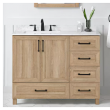 (28). Tobana 42 in. Single Sink Weathered Tan Bath Vanity with White Engineered Marble Top (Assembled)