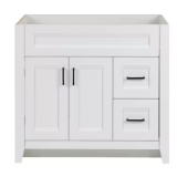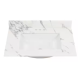 - Its soft-close cabinet doors, hidden drawer and adjustable interior shelf help you organize your essentials, while its white engineered marble countertop and undermount ceramic sink are stylish and easy to clean, plus you'll love how its left-offset sink saves precious counter space.