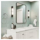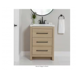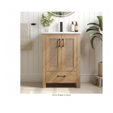 - Featuring a weathered tan finish, black and brushed nickel hardware, and a rustic look, the Tobana bathroom vanity from Glacier Bay makes an on-trend statement in any guest bathroom.