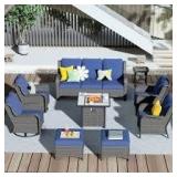 OVIOS Outdoor Furniture 9-Piece with 30'' Fire Pit Table and Kenard 2 Rocking Chairs