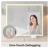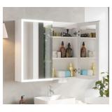 FCH Bathroom Medicine Cabinet with Dimmable LED Mirror, 32"×28" Anti-Fog LED Lighted Mirror Bathroom Cabinet Wall Mounted with 2 Outlets 2 USB Ports 2 Inside and Outside Mirror Doors