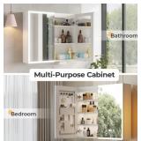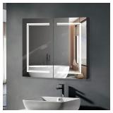 Medicine Cabinet with LED Mirror for Bathroom, 24''x30'' Aluminum, Wall Mounted Led Medicine Cabinet, Defog, Stepless Dimming, 3 Colors, 2 Outlets, 2USB (24'' x 30 '' Single Door)