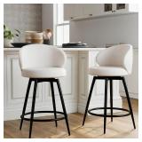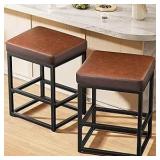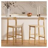 Counter Height Stools Set of 2, Farmhouse 25” Bar Stools with Solid Wood Legs & Back, Mid Century Modern Barstools Chairs for Kitchen Island, Dining Room, Cafe, Pub, Natural Oak