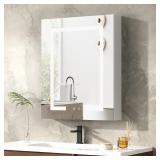 【LED Bathroom Mirror Cabinet】-- Bathroom wall cabinet with LED mirror design will add a touch of luxury and glamour to your bathroom. With its 3000-6000K LED light and 10% to 100% brightness, this bathroom mirror storage will provide a natural daytime light, which is perfect for makeup application, shaving, and hair styling.