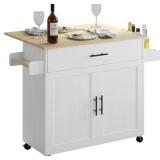 IRONCK Rolling Kitchen Island Table on Wheels with Drop Leaf, Storage Cabinet, Drawer, Spice/Towel Rack, Kitchen Cart, 47.25" Wide White