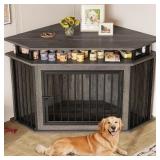 IRONCK 51" Corner Wooden Dog Crate Furniture with 2-Tier Shelves, Pet Kennel for Large Dogs, Space-Saving Dog Cage Indoor, Rustic Brown (26.7" L x 51.2" W x 33.5" H)