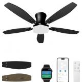 Ceiling Fan with Lights and Remote Control,42 Inch Low Profile Flush Mount, Black Ceiling Fan with Quiet Reversible Motor, 3CCT Dimmable LED, Modern Ceiling Fans for Bedroom, Indoor, Outdoor