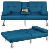 Yaheetech Convertible Sofa Bed Adjustable Fabric Couch Sleeper Modern Recliner Reversible Loveseat Folding Daybed Guest Bed, Removable Armrests, Cup Holders, 3 Angles, 772lb Capacity, Aqua Blue