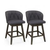 Counter Height Fabric Upholstered Bar Stools Set of 2, Gray