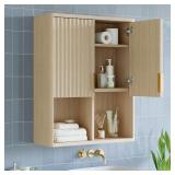 Besiter Fluted Bathroom Wall Cabinet Over The Toilet Storage, 23"x 29" Medicine Cabinet with Adjustable Shelf, Laundry Cabinet Wall Mounted and Kitchen Storage Cabinet(Natural Oak)