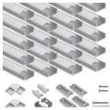 20-Pack 3.3ft/1Meter U Shape LED Aluminum Channel System with Milky Cover, End Caps and Mounting Clips, Aluminum Profile for LED Strip Light Installations, Very Easy Installation