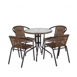 (204) Black 5-Piece Metal Frame with Round Glass table Top Outdoor Bistro Set