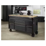 (11) Husky 61 in. W x 23 in. D Heavy Duty 15-Drawer Mobile Workbench Tool Chest with Solid Wood Top in Matte Black