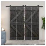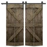 (90) 68 in. x 84 in. K Series Espresso Stained DIY Wood Double Bi-Fold Barn Doors with Sliding Hardware Kit