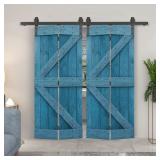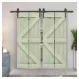 (88) 72 in. x 84 in. K Series Sage Green Stained DIY Wood Double Bi-Fold Barn Doors with Sliding Hardware Kit