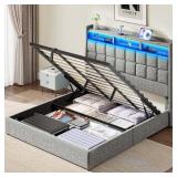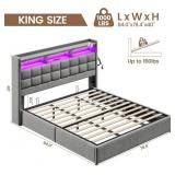 Signature Design by Ashley Cielden Contemporary King Upholstered Platform Bed with Wood Roll Slats, No Box Spring Needed, Gray