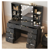 Linsy Home Large 47.2" Makeup Vanity With Mirror And 11 Lights, Vanity Desk with 9 Drawers & 2 Adjustable Cabinets, Dressing Table with Charging Station & Hair Dryer Rack For Bedroom, Black