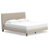 - KING UPHOLSTERED BED: This king upholstered bed with roll slats is a fresh style awakening. Its sleekly simple low profile and soft gray woven fabric play perfectly with modern aesthetics