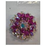 Aurora Borealis Rhinestone and Purple Bead Brooch |